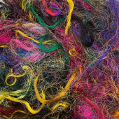 Тонкие шелковые нити обычно очень яркого цвета. Индийский материал. При длительном валянии могут отдавать цвет (линять). При этом цвет не теряют, но окрашивают материалы с которыми контактируют! Это свойство стоит использовать для получения красивых акварельных переходов! Работа с индийскими сари всегда эксперимент.