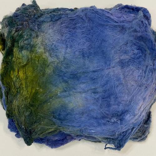 Шелковые коконы обработанные и растянутые в форме квадрата со стороной около 25 см. Их также можно расслаивать, растягивать. Замечательны для валяния и прядения. -