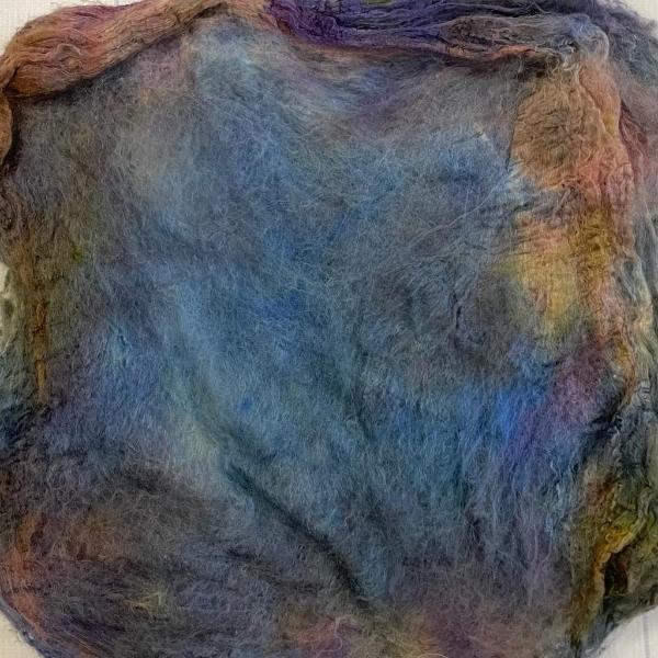 Шелковые коконы обработанные и растянутые в форме квадрата со стороной около 25 см. Их также можно расслаивать, растягивать. Замечательны для валяния и прядения. -