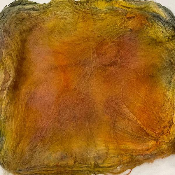 Шелковые коконы обработанные и растянутые в форме квадрата со стороной около 25 см. Их также можно расслаивать, растягивать. Замечательны для валяния и прядения. -