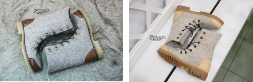 Меня зовут Александра Александрова. В 2015 году я сваляла свои первые тапочки, и, сразу же - первые ботинки!